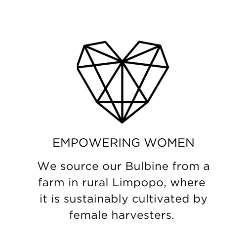 A great synthesis between female harvesters in rural Limpopo and ground-breaking scientific research led to the discovery of Bulbine frutescens, a small shrub indigenous to the dry valleys of Southern Africa. Used for generations as a remedy for skin injuries thanks to the soothing, anti-inflammatory effect of the sap.